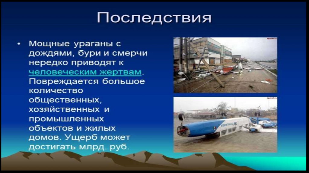 Ураганы сопровождаются такими явлениями, как ливни, снегопады,