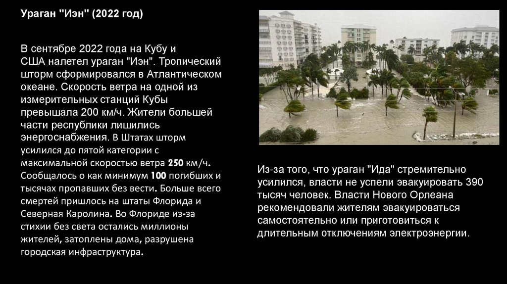 Ураган "Иэн" (2022 год)В сентябре 2022 года на Кубу и