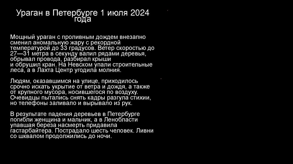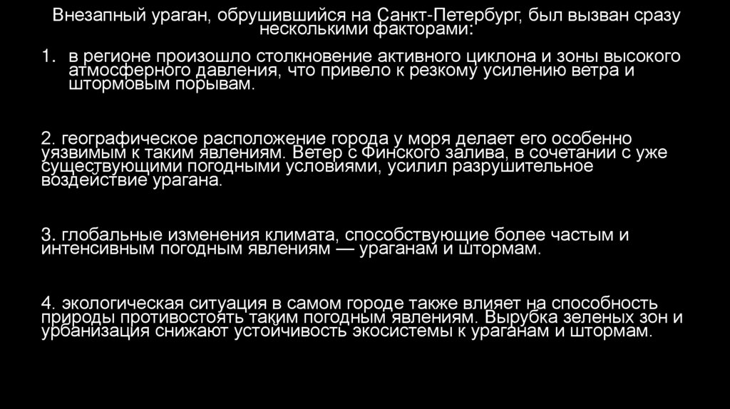 Внезапный ураган, обрушившийся на Санкт-Петербург, был вызван сразунесколькими факторами: