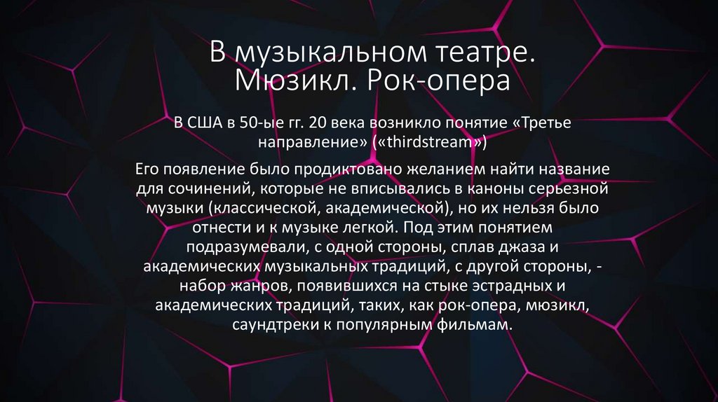 академических музыкальных традиций, с другой стороны, набор жанров, появившихся на стыке эстрадных и