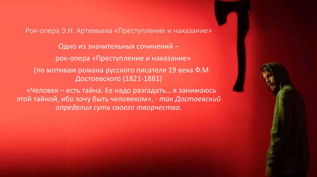 Рок-опера Э.Н. Артемьева «Преступление и наказание»Одно из значительных сочинений –