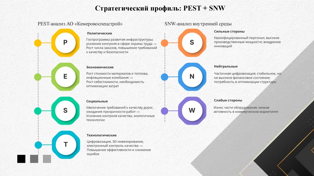 Стратегический профиль: PEST + SNWPEST-анализ АО «Кемеровоспецстрой»
