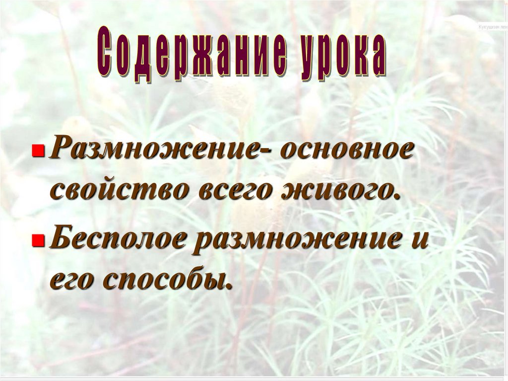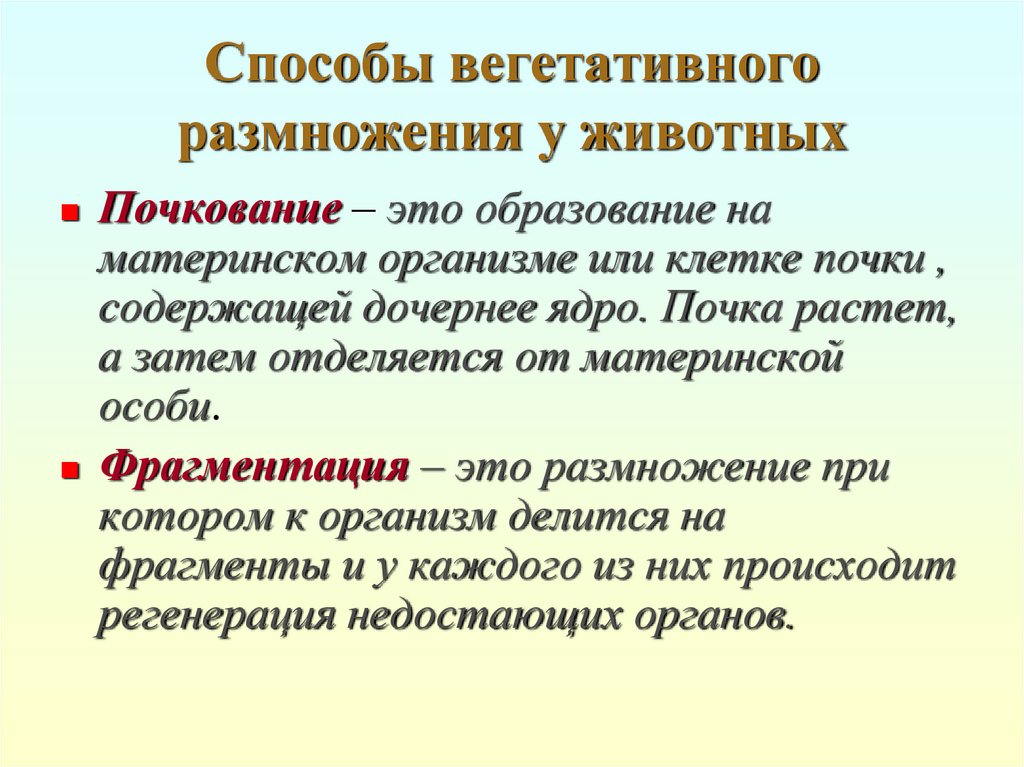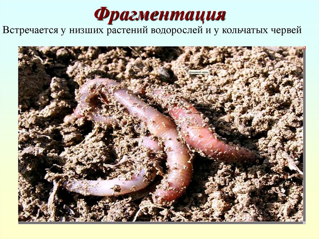 Встречается у низших растений водорослей и у кольчатых червей14. Вегетативное размножение