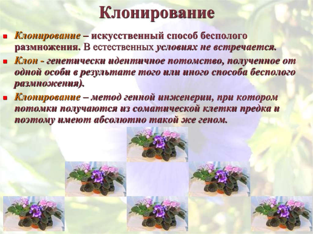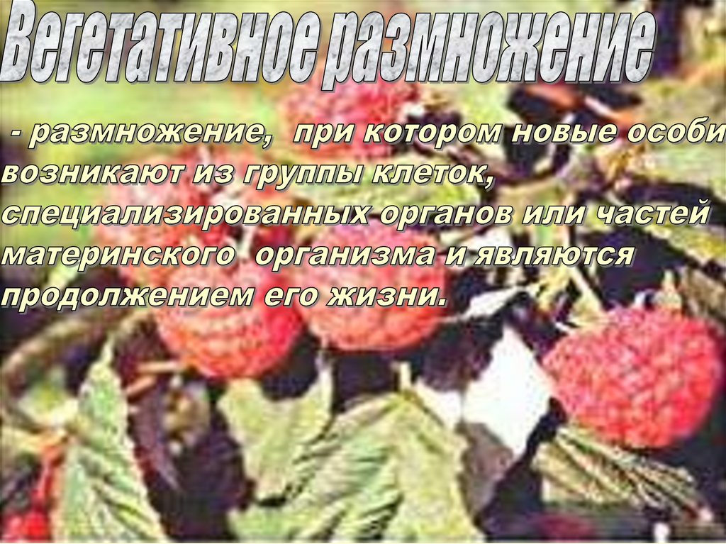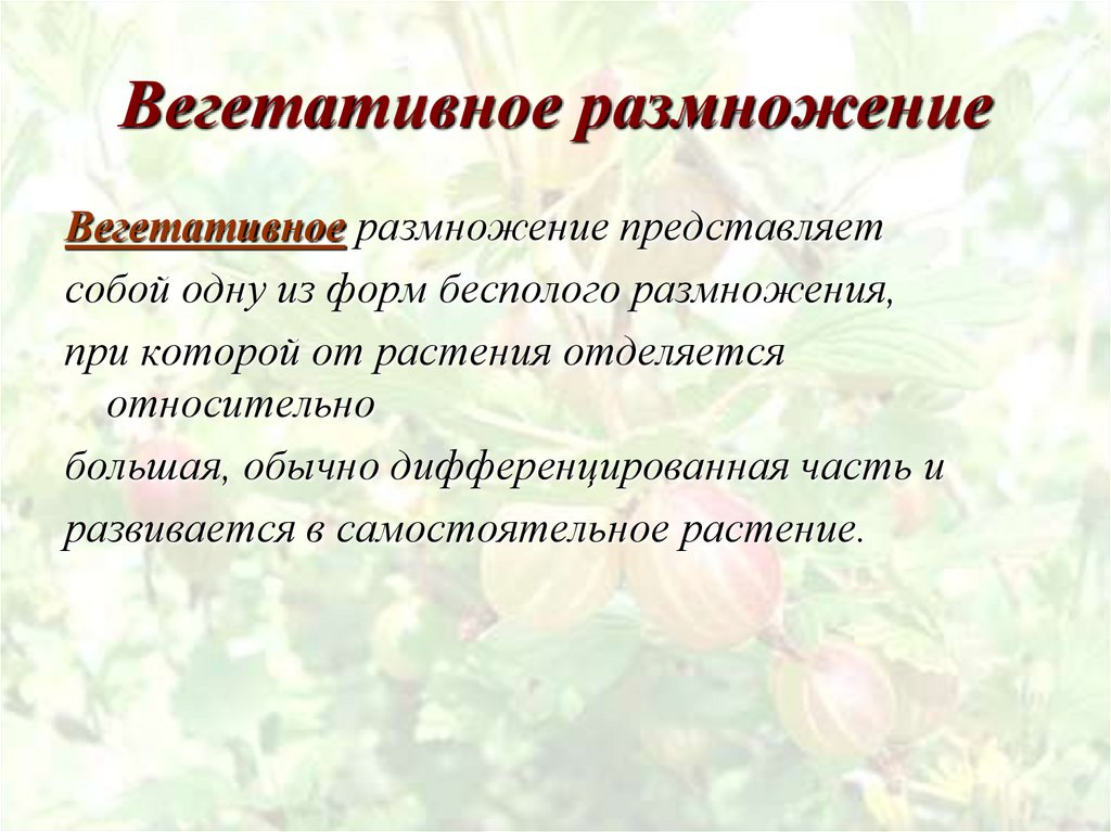 Вегетативное размножение представляетсобой одну из форм бесполого размножения,