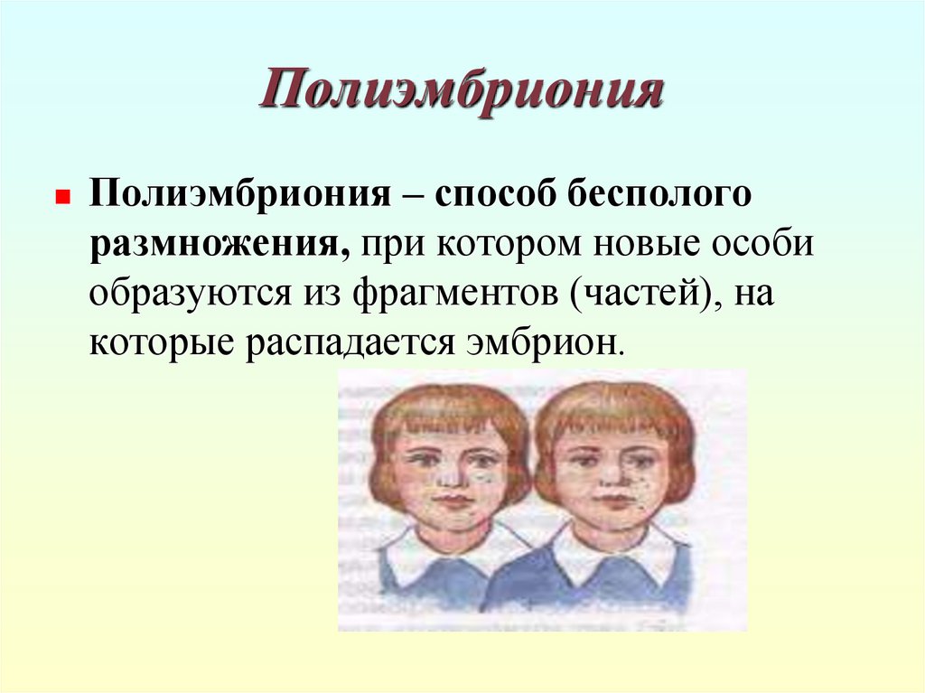 Полиэмбриония – способ беспологоразмножения, при котором новые особи