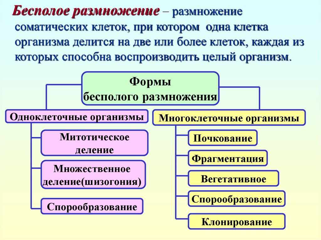 Бесполое размножение – размножениесоматических клеток, при котором одна клетка