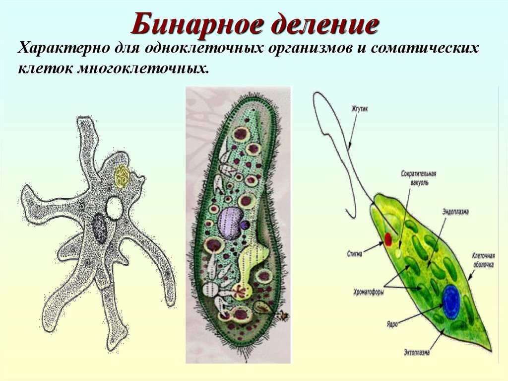 Характерно для одноклеточных организмов и соматическихклеток многоклеточных.
