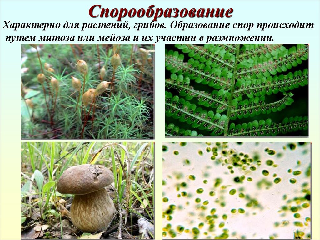 Характерно для растений, грибов. Образование спор происходитпутем митоза или мейоза и их участии в размножении.
