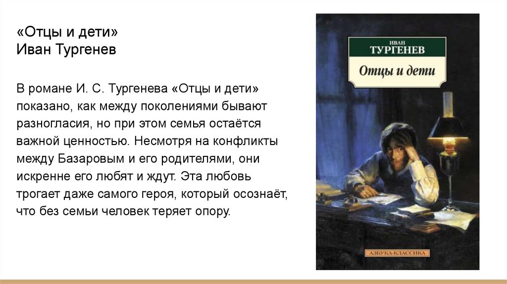 В романе И. С. Тургенева «Отцы и дети»показано, как между поколениями бывают
