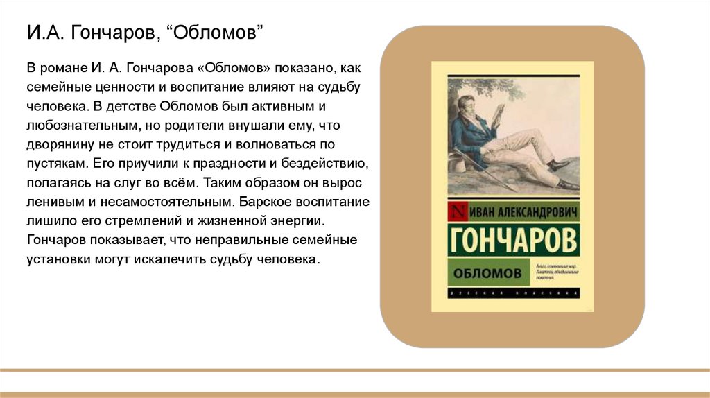 И.А. Гончаров, “Обломов”В романе И. А. Гончарова «Обломов» показано, как