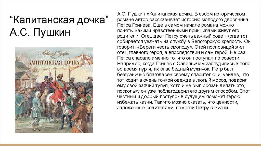 А.С. Пушкин «Капитанская дочка. В своем историческомромане автор рассказывает историю молодого дворянина