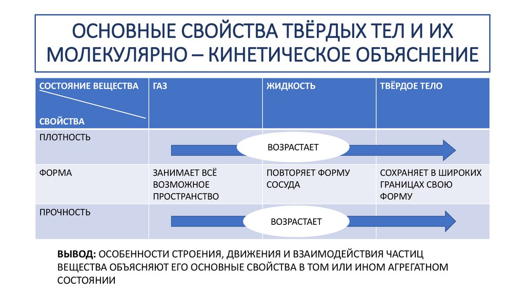 2. ОСНОВНЫЕ СВОЙСТВА ТВЁРДЫХ ТЕЛ И ИХ МОЛЕКУЛЯРНО – КИНЕТИЧЕСКОЕ ОБЪЯСНЕНИЕ