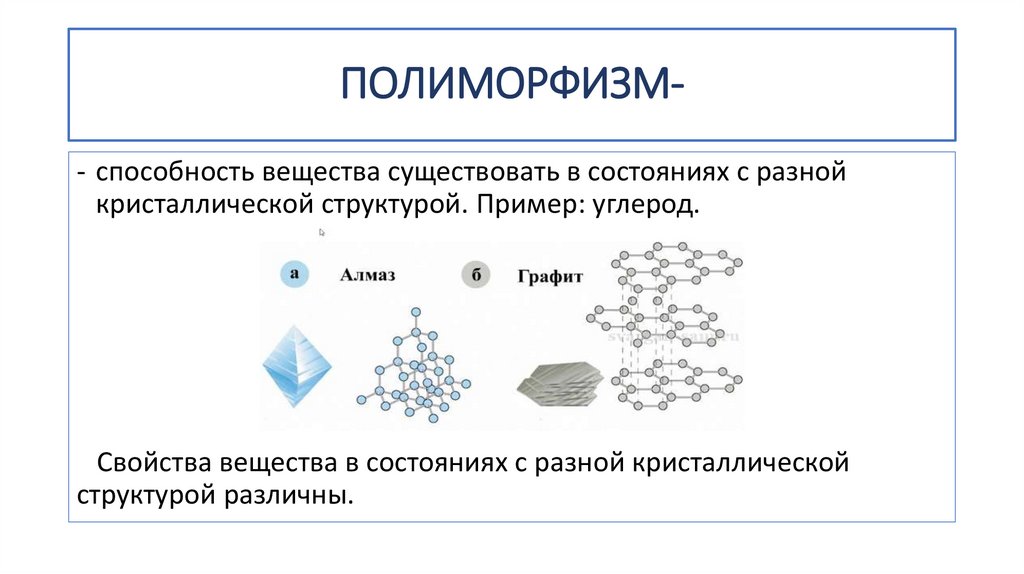 способность вещества существовать в состояниях с разнойкристаллической структурой. Пример: углерод.