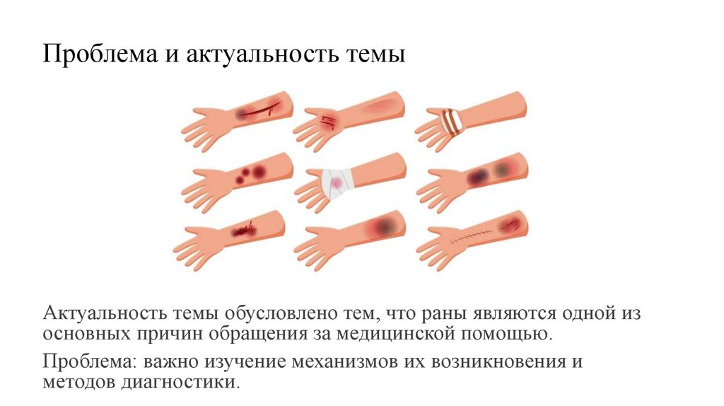 Актуальность темы обусловлено тем, что раны являются одной изосновных причин обращения за медицинской помощью.