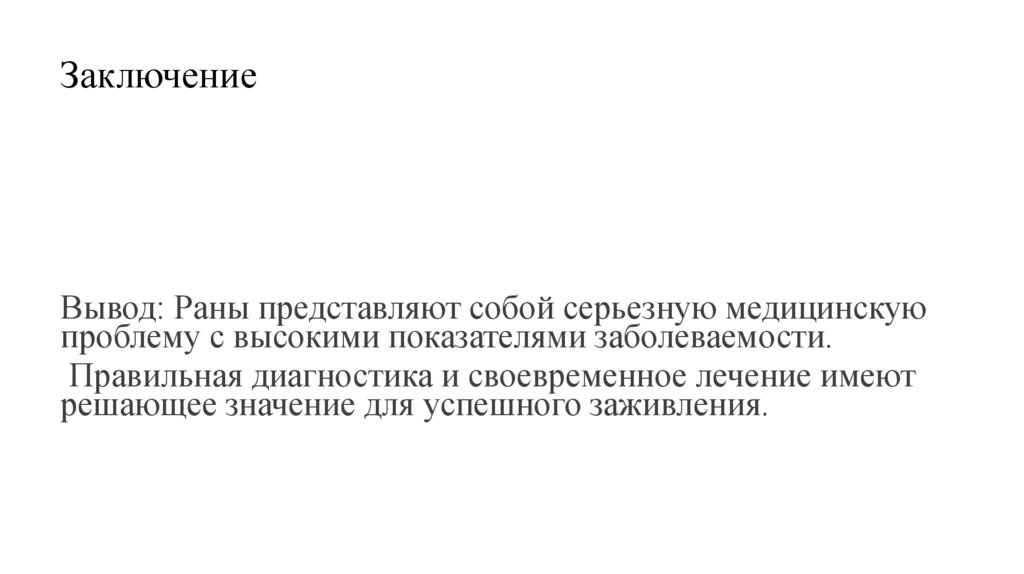 Вывод: Раны представляют собой серьезную медицинскуюпроблему с высокими показателями заболеваемости.