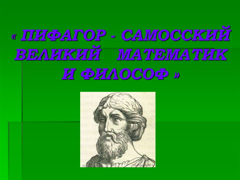 1. « ПИФАГОР - САМОССКИЙ ВЕЛИКИЙ МАТЕМАТИК И ФИЛОСОФ »