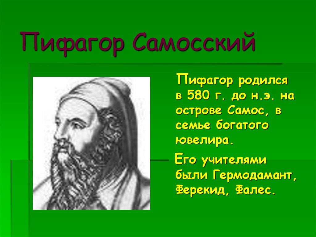 Пифагор родилсяв 580 г. до н.э. на