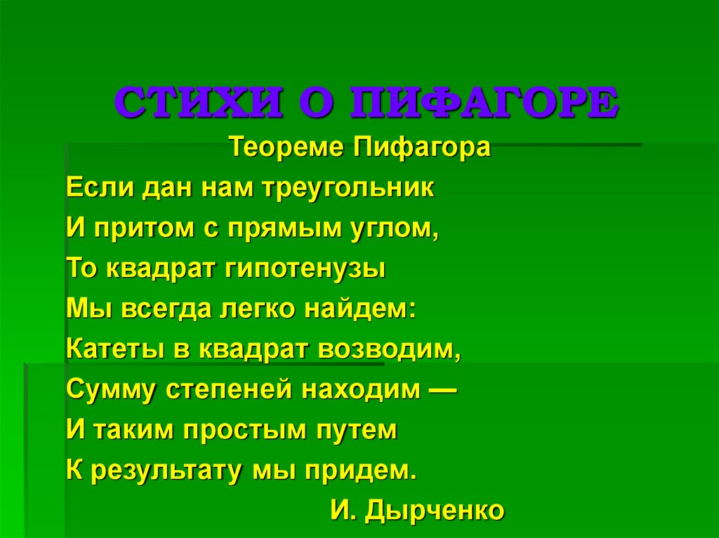 12. СТИХИ О ПИФАГОРЕ