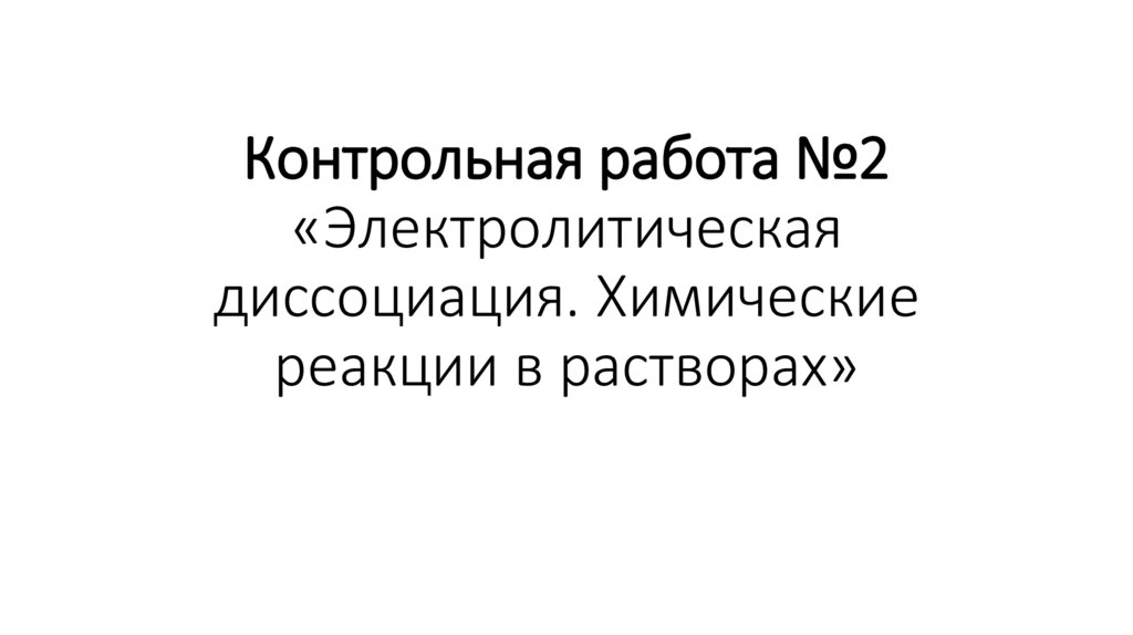 1. Контрольная работа №2 «Электролитическая диссоциация. Химические реакции в растворах»