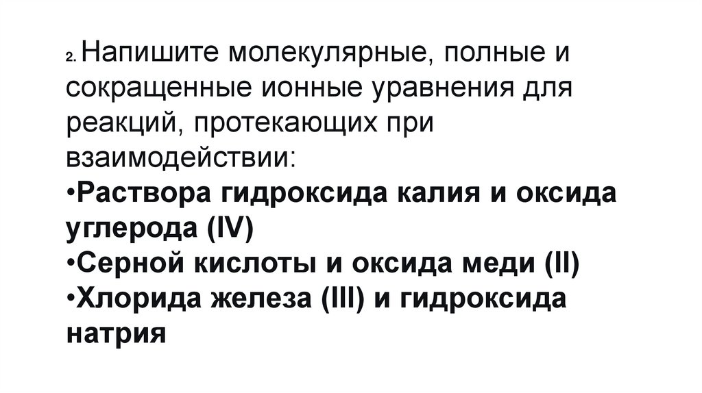 Напишите молекулярные, полные исокращенные ионные уравнения для