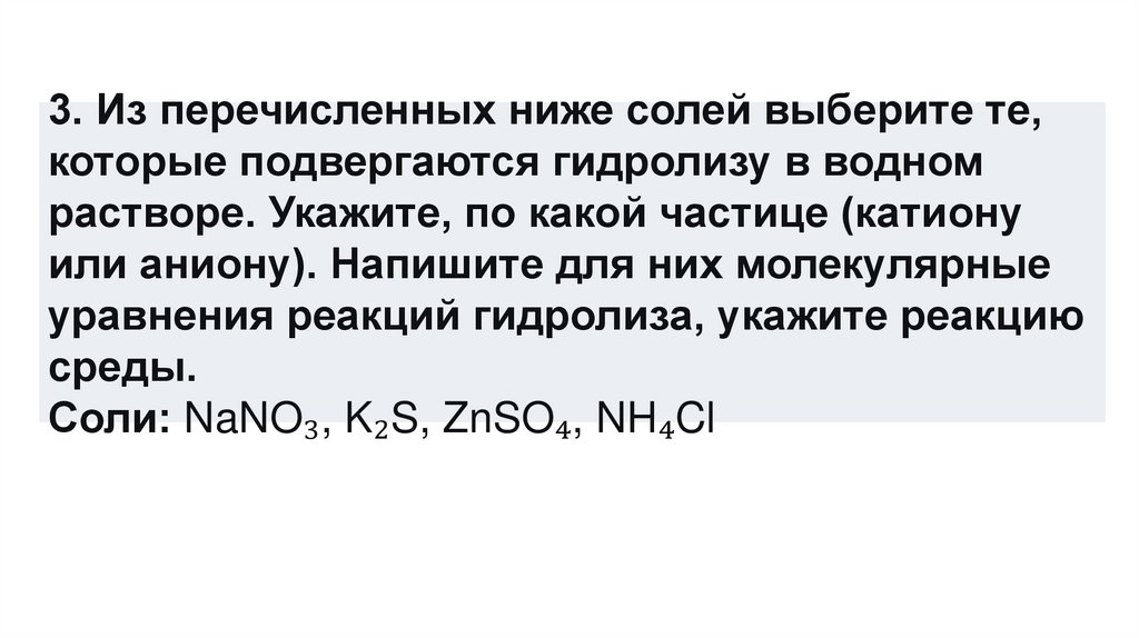 3. Из перечисленных ниже солей выберите те,которые подвергаются гидролизу в водном