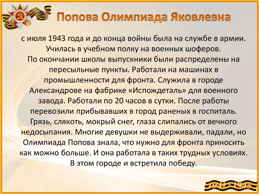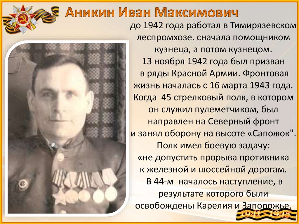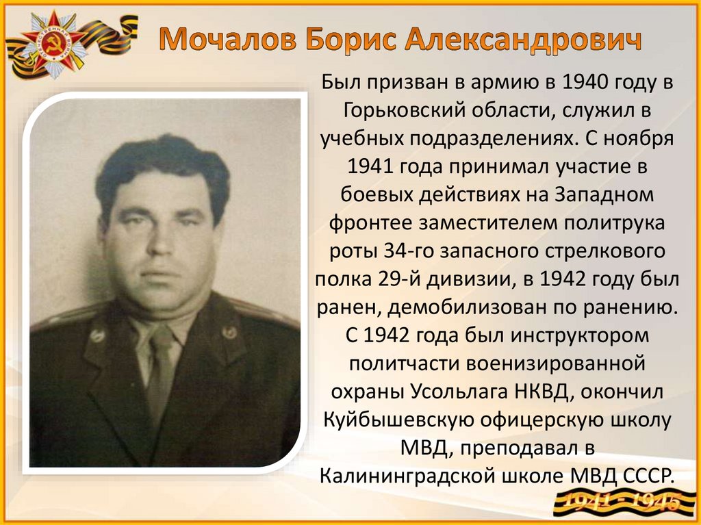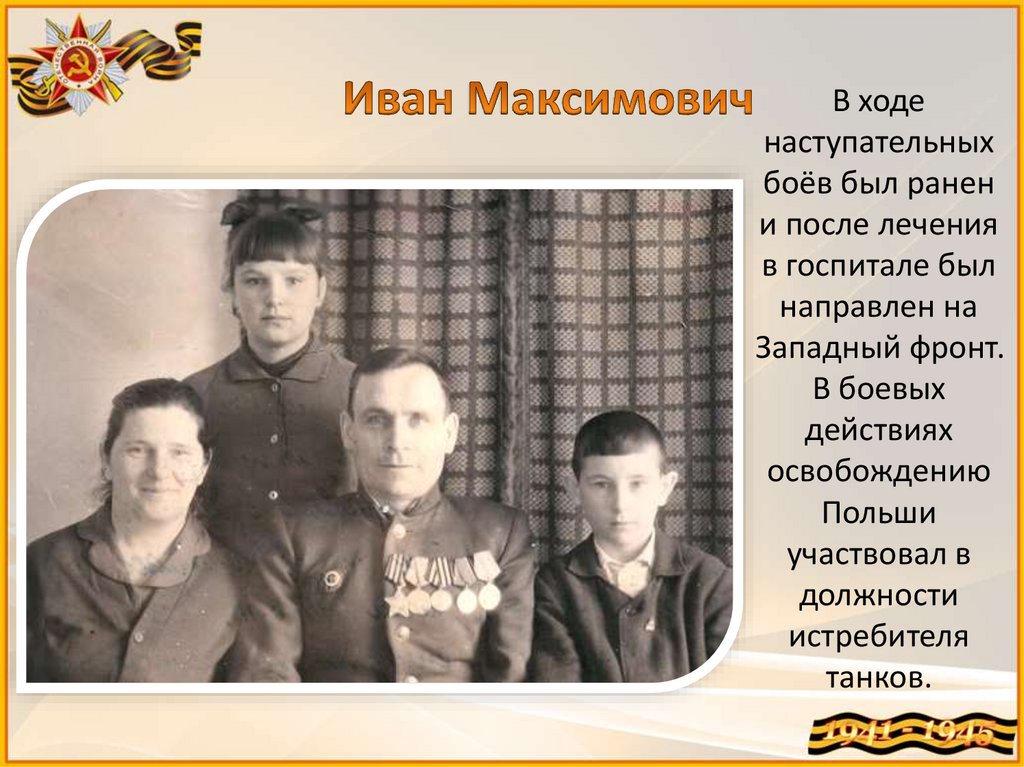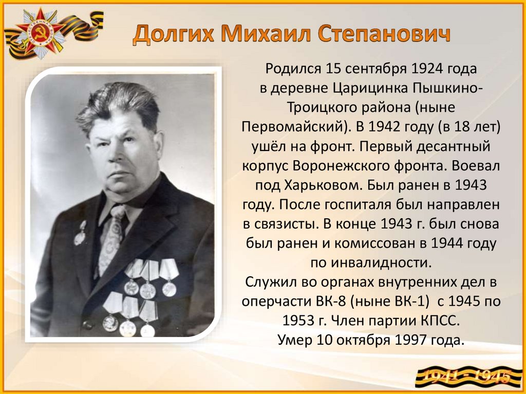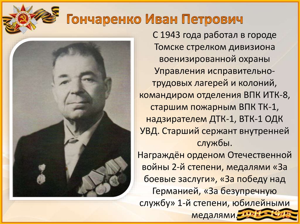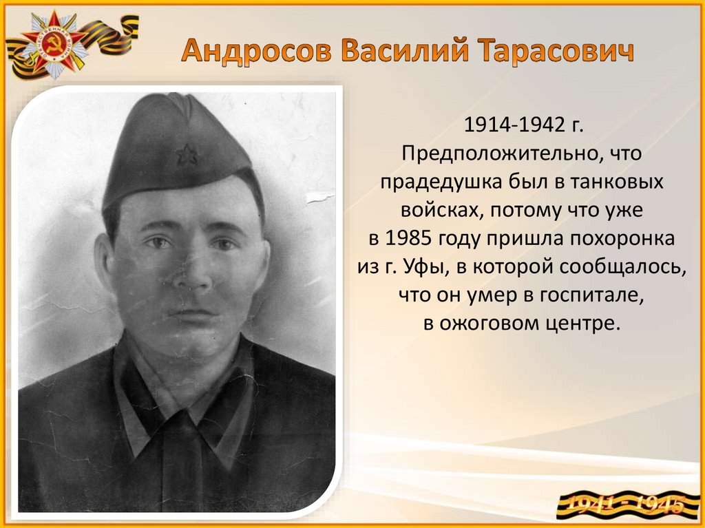 удостоен наград за боевые подвиги –ордена Красной Звезды, Отечественной