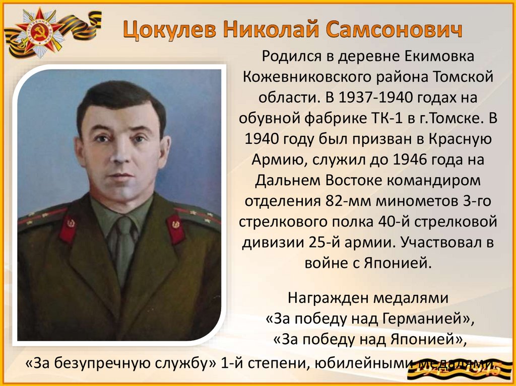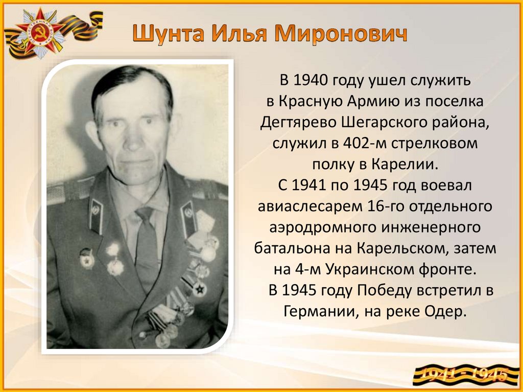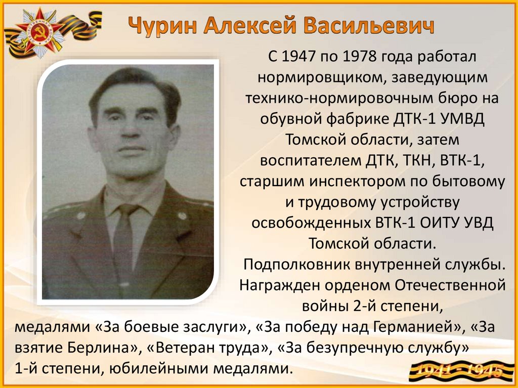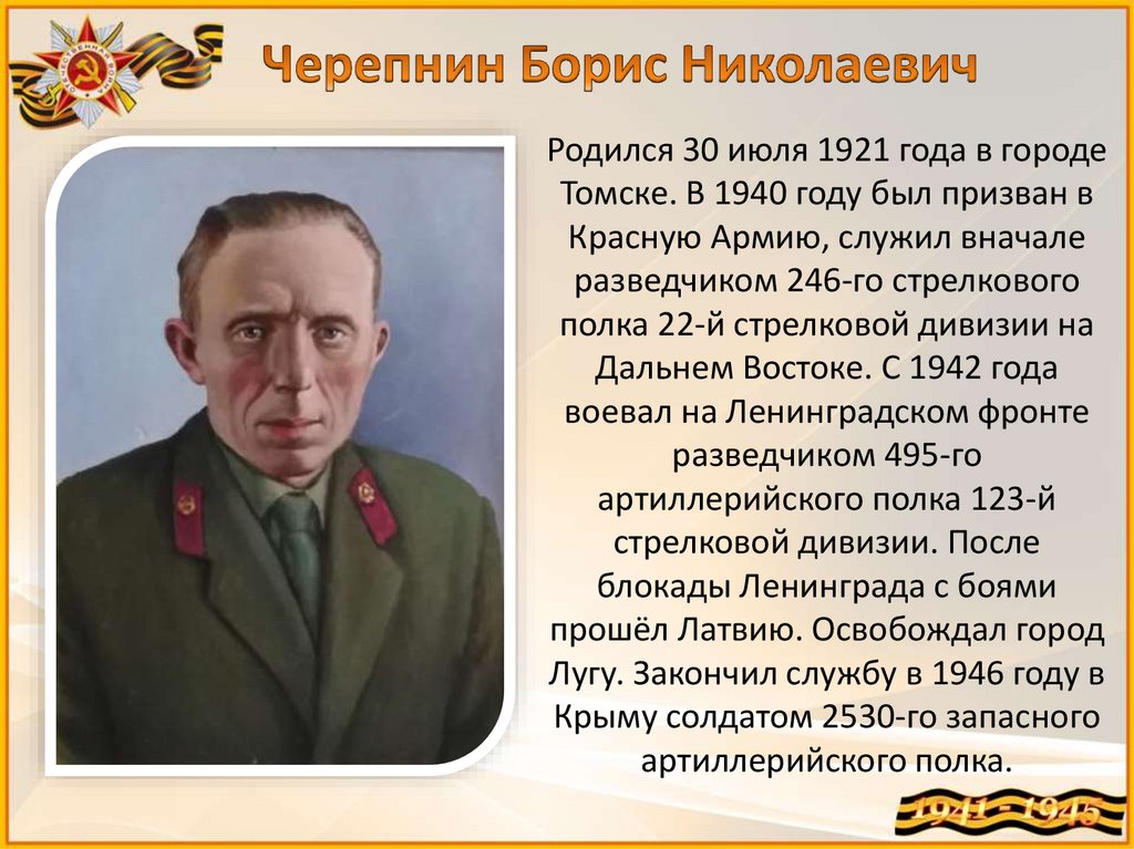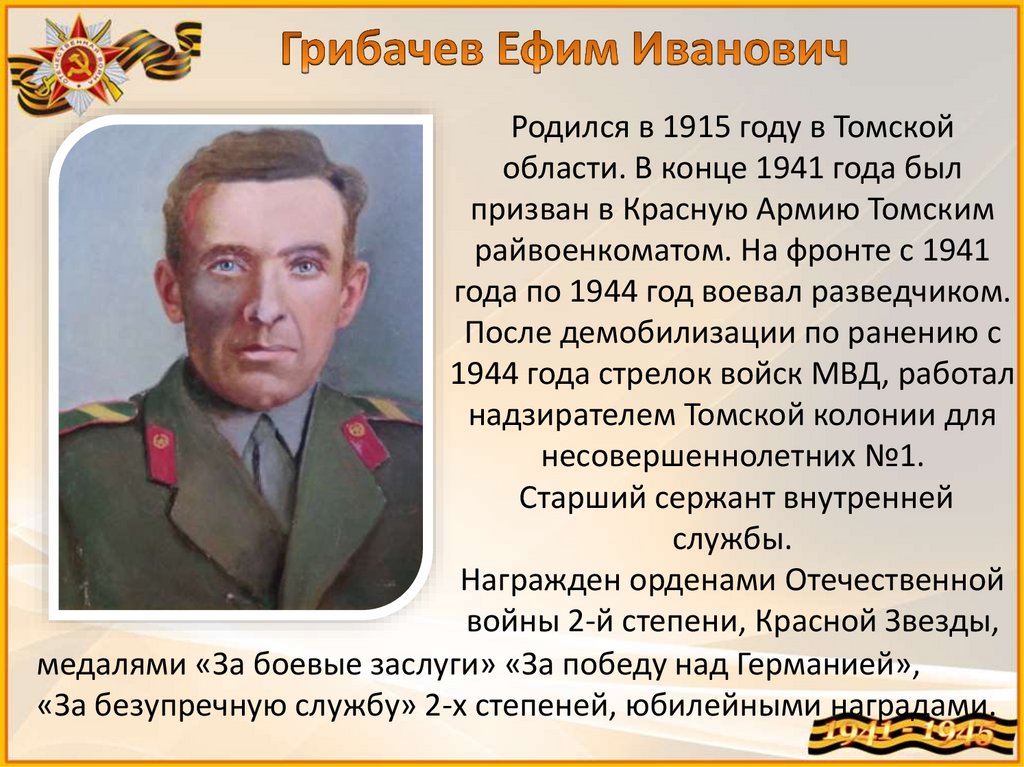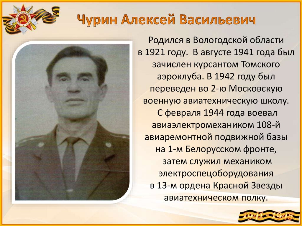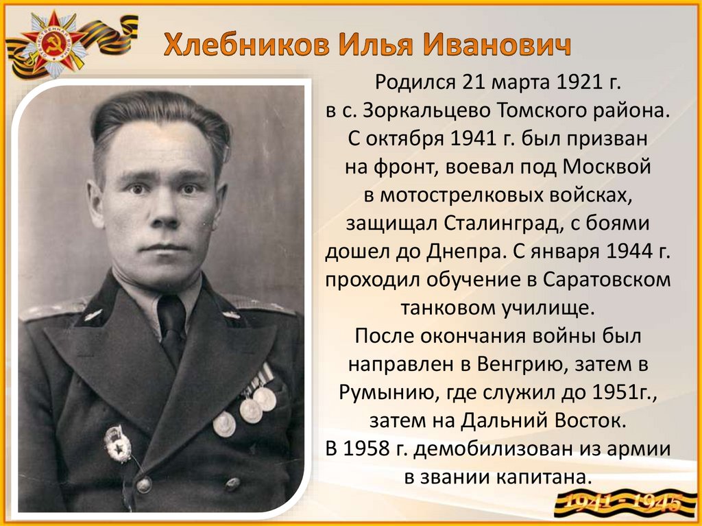 Родился в 1924 году в Томскойобласти. С 22 июня 1941 года воевал