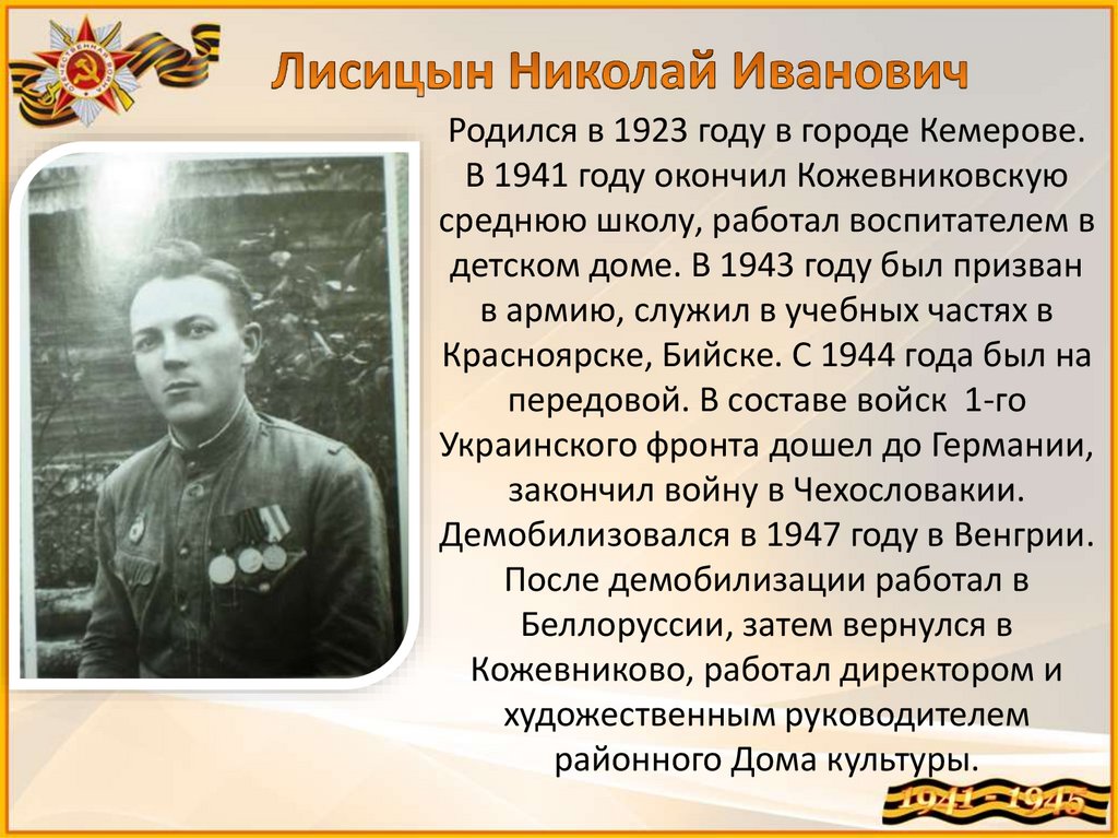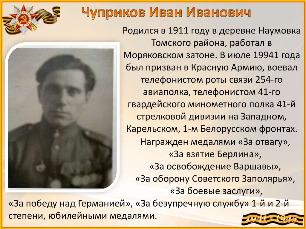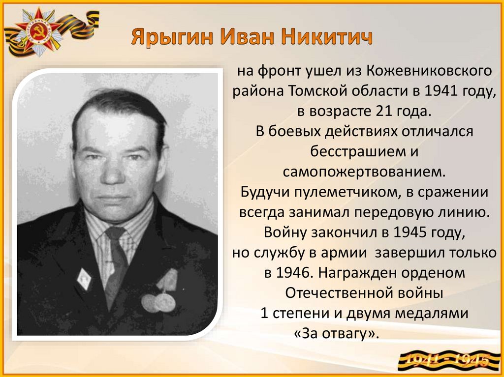 на фронт ушел из Кожевниковскогорайона Томской области в 1941 году,