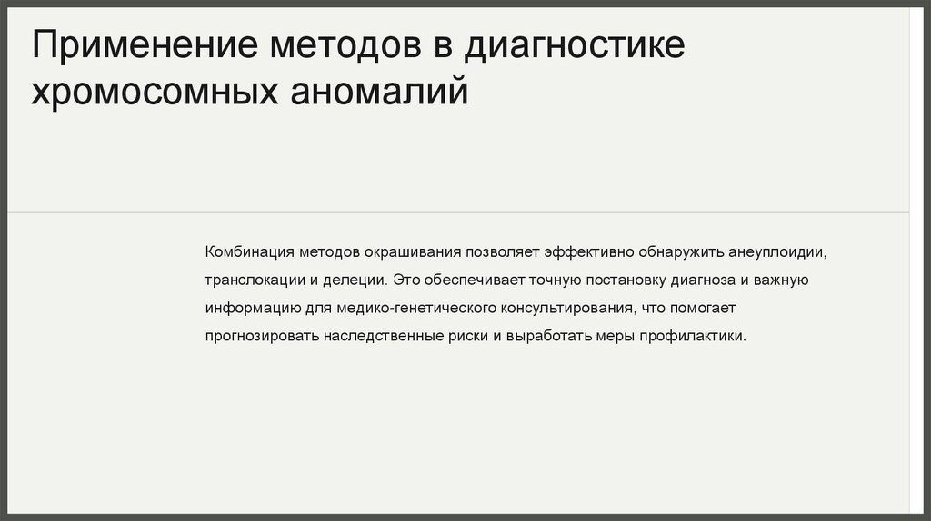 Применение методов в диагностикехромосомных аномалий