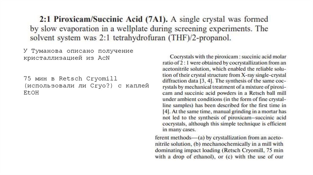 Grinding EtOH/THF/AcN(даёт сокристалл