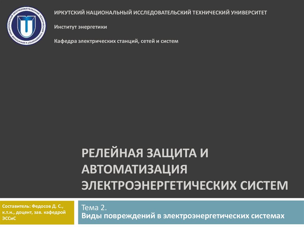 ИРКУТСКИЙ НАЦИОНАЛЬНЫЙ ИССЛЕДОВАТЕЛЬСКИЙ ТЕХНИЧЕСКИЙ УНИВЕРСИТЕТИнститут энергетики