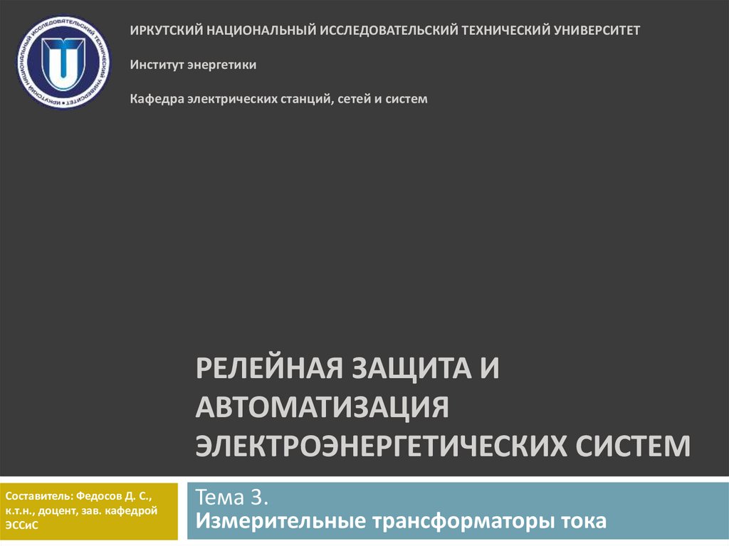 ИРКУТСКИЙ НАЦИОНАЛЬНЫЙ ИССЛЕДОВАТЕЛЬСКИЙ ТЕХНИЧЕСКИЙ УНИВЕРСИТЕТИнститут энергетики