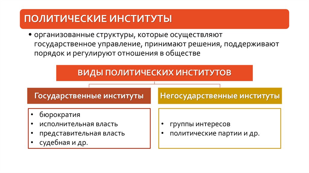 ПОЛИТИЧЕСКИЕ ИНСТИТУТЫ• организованные структуры, которые осуществляют