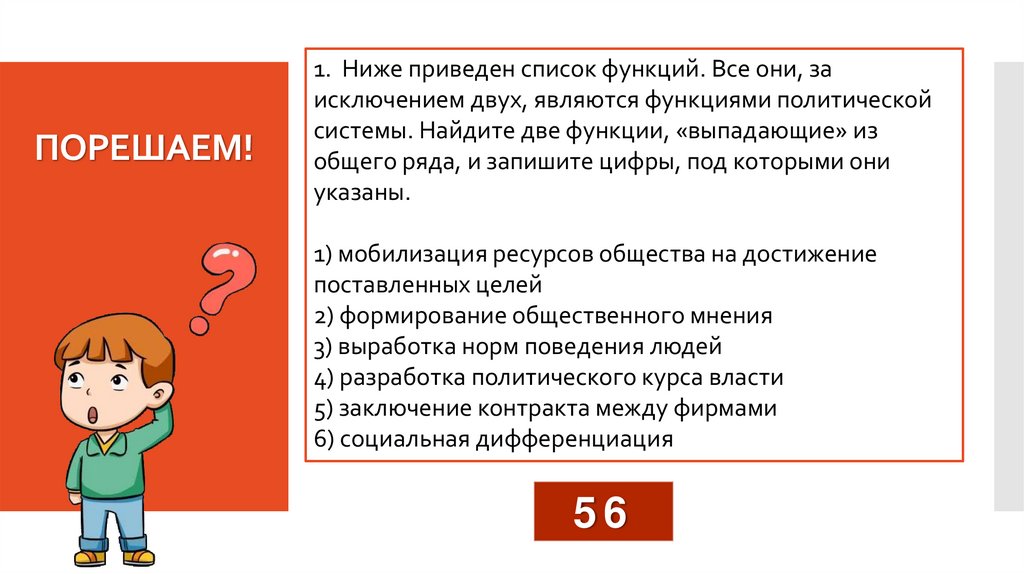1. Ниже приведен список функций. Все они, заисключением двух, являются функциями политической