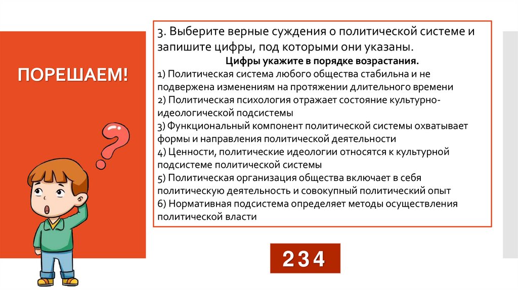 3. Выберите верные суждения о политической системе изапишите цифры, под которыми они указаны.
