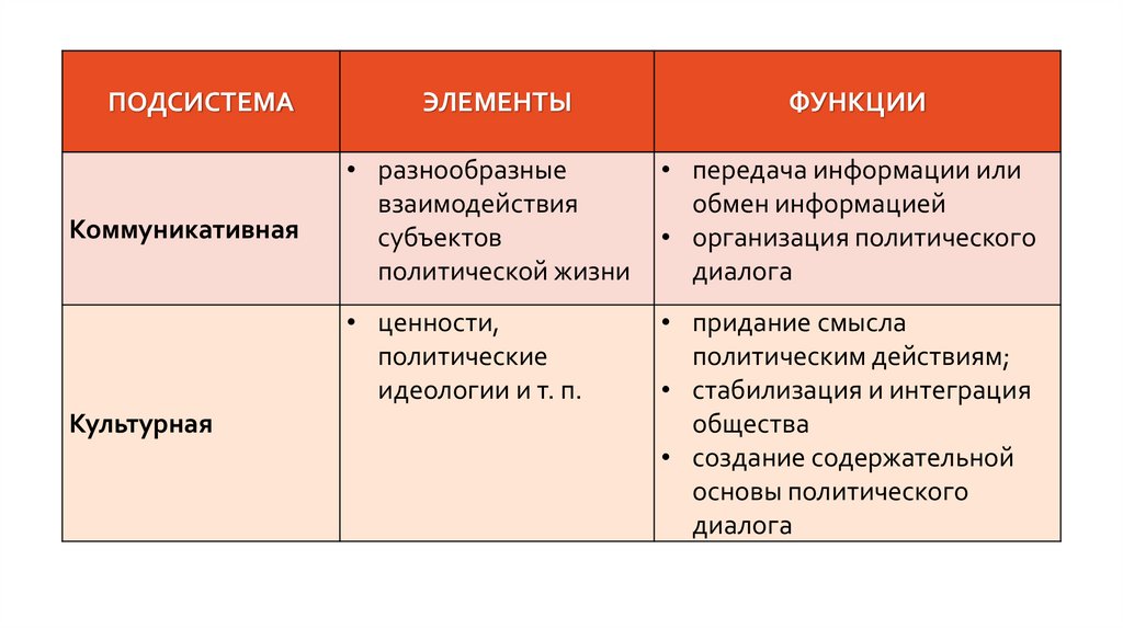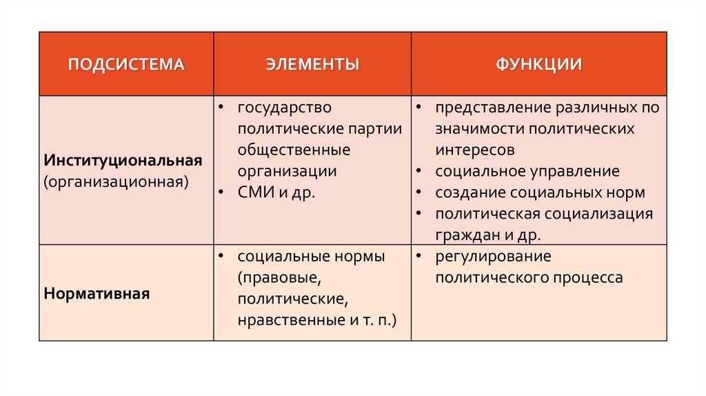 подсистеме политической системы