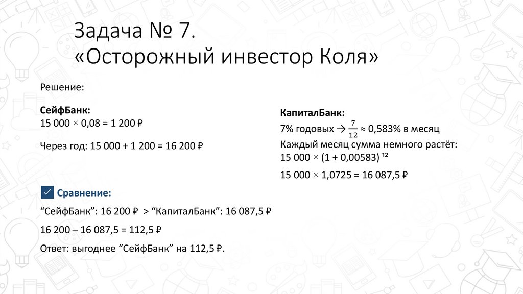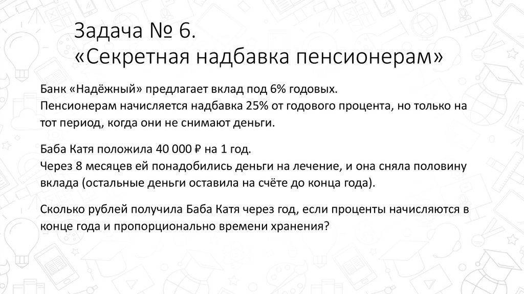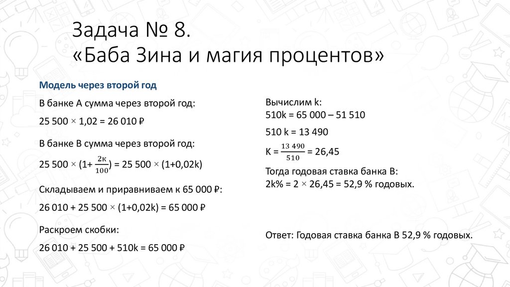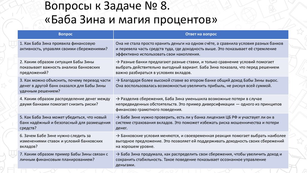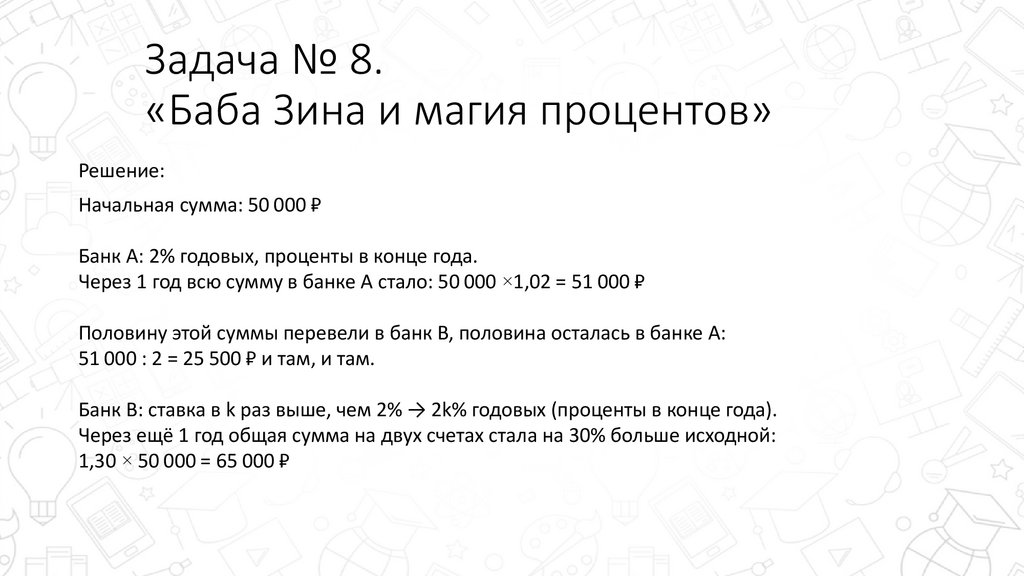 Вопросы к Задаче № 8.«Баба Зина и магия процентов»
