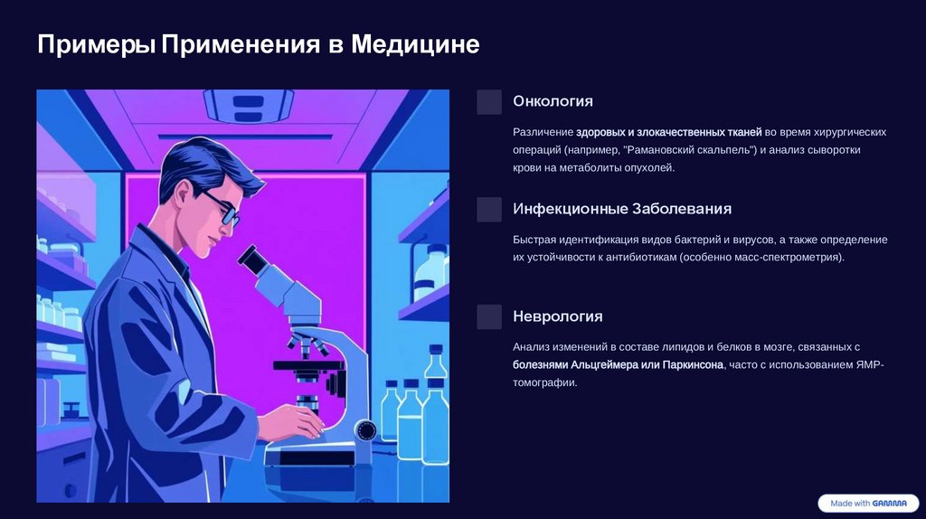 операций (например, "Рамановский скальпель") и анализ сыворотки