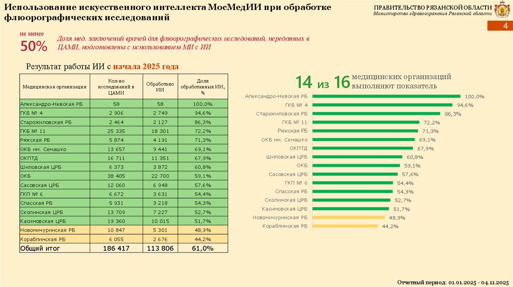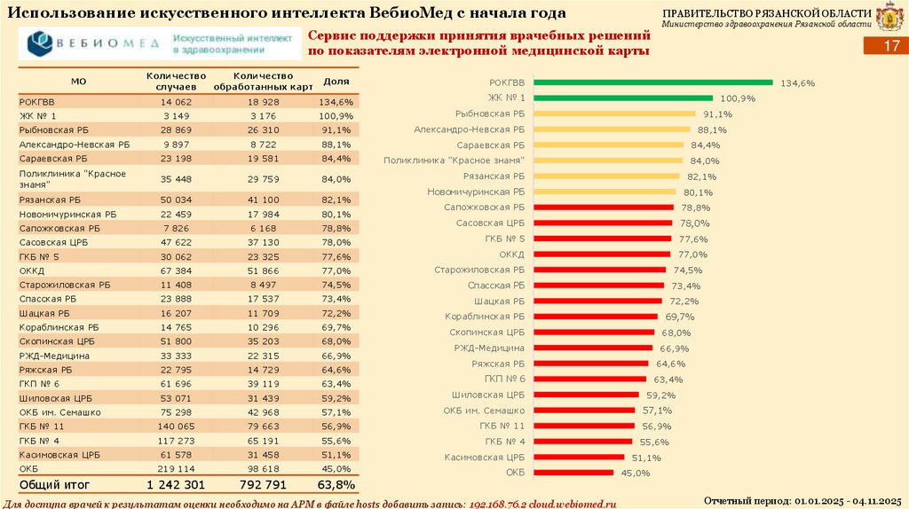 Использование искусственного интеллекта ВебиоМед с начала годаПРАВИТЕЛЬСТВО РЯЗАНСКОЙ ОБЛАСТИ