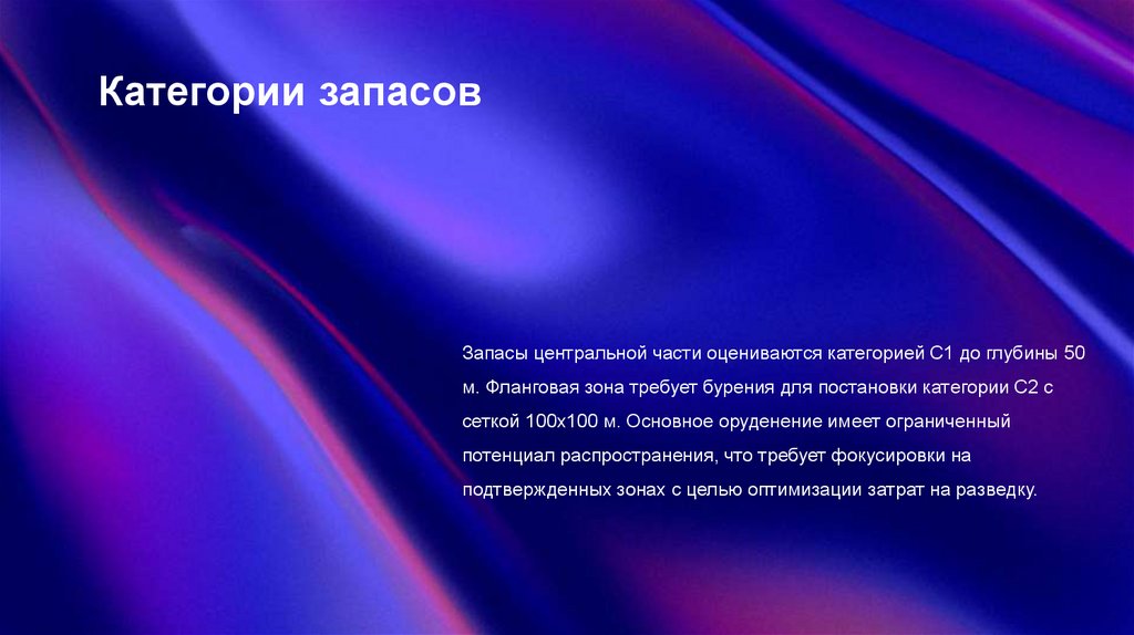 Категории запасовЗапасы центральной части оцениваются категорией С1 до глубины 50