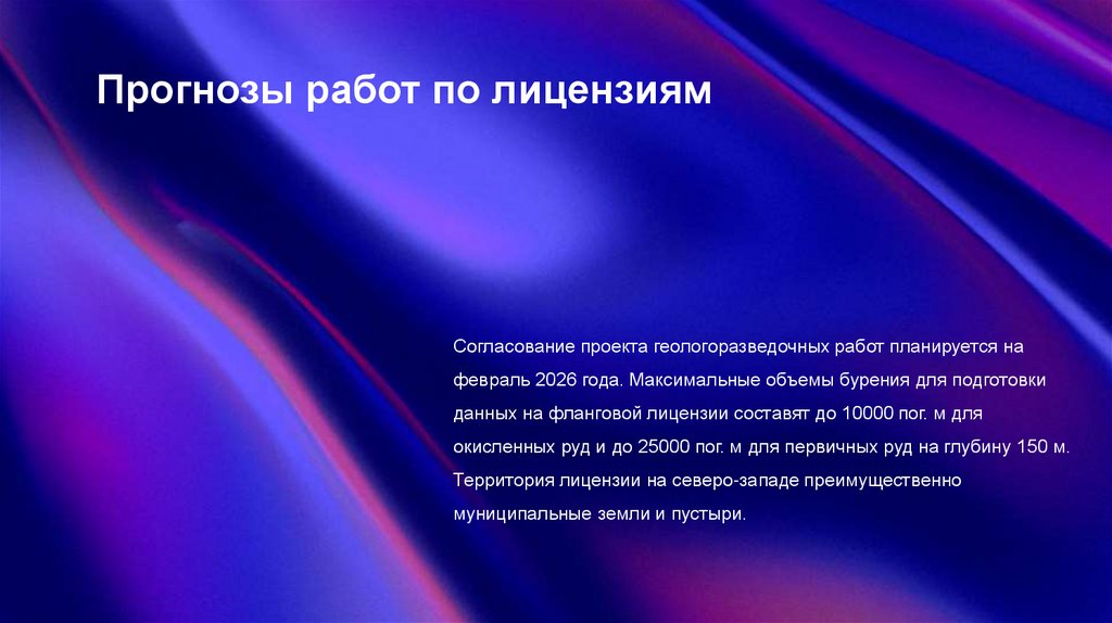 Прогнозы работ по лицензиямСогласование проекта геологоразведочных работ планируется на