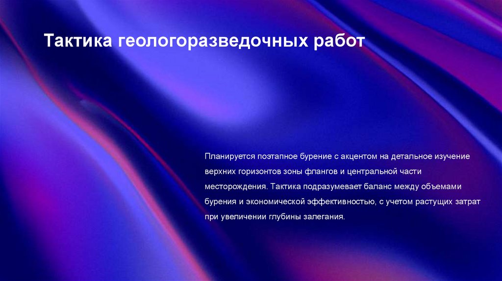 Тактика геологоразведочных работПланируется поэтапное бурение с акцентом на детальное изучение