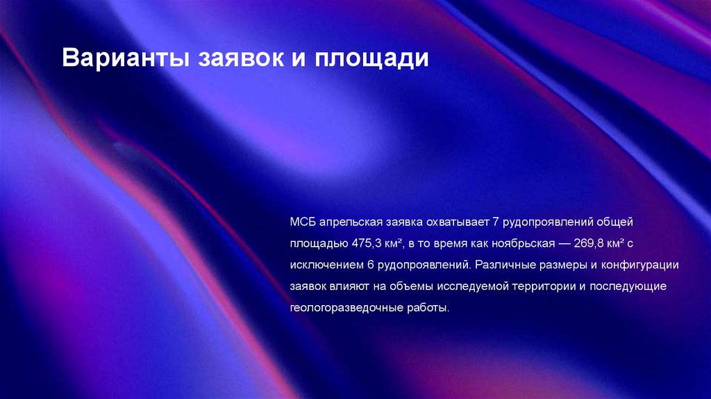 Варианты заявок и площадиМСБ апрельская заявка охватывает 7 рудопроявлений общей