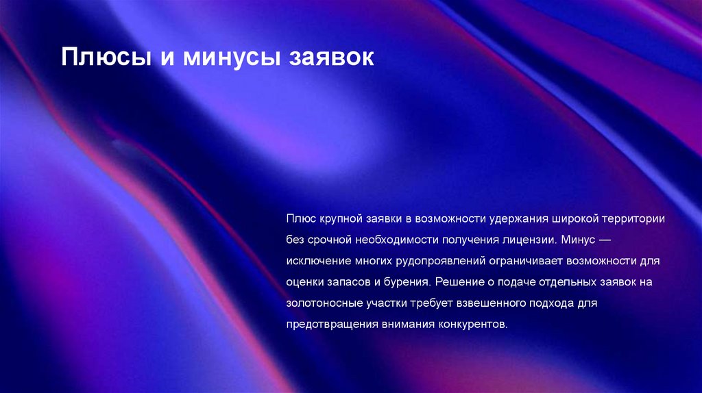 Плюсы и минусы заявокПлюс крупной заявки в возможности удержания широкой территории