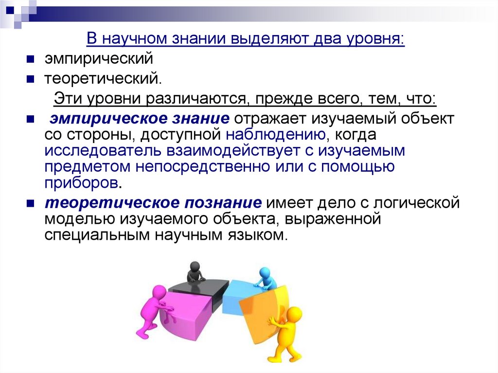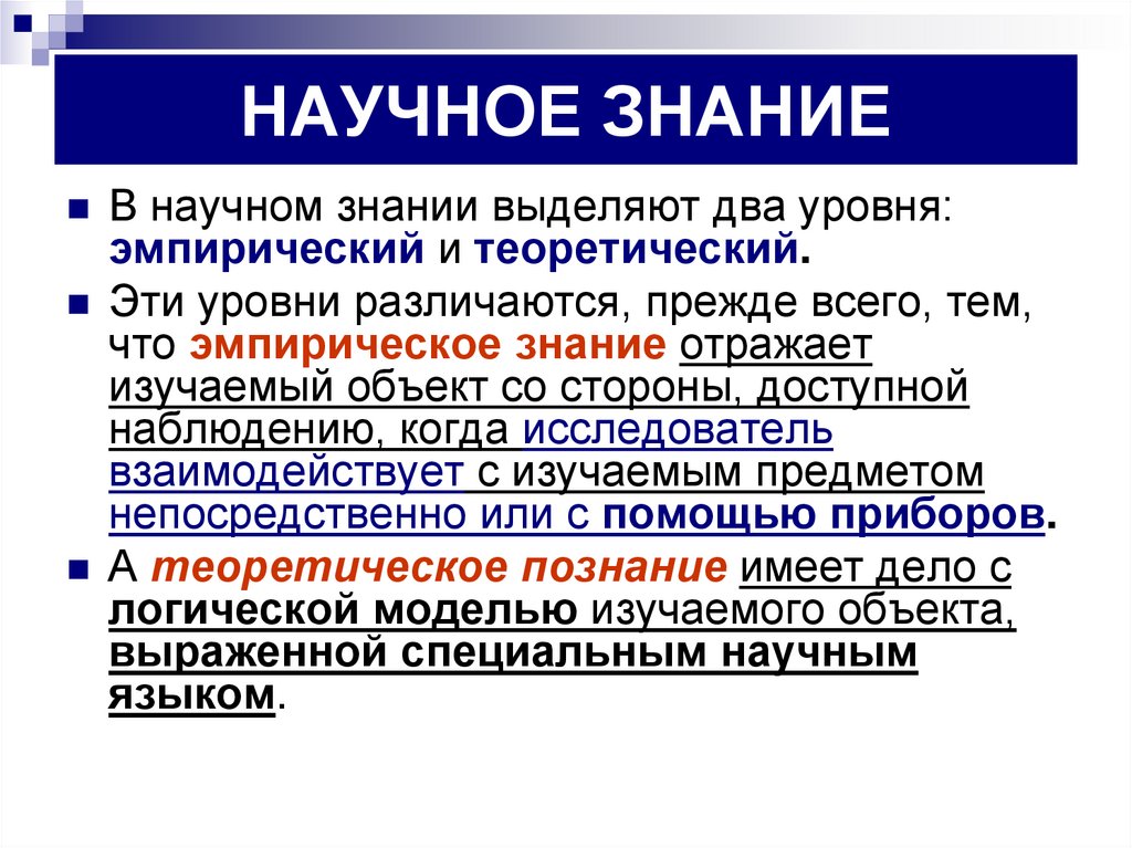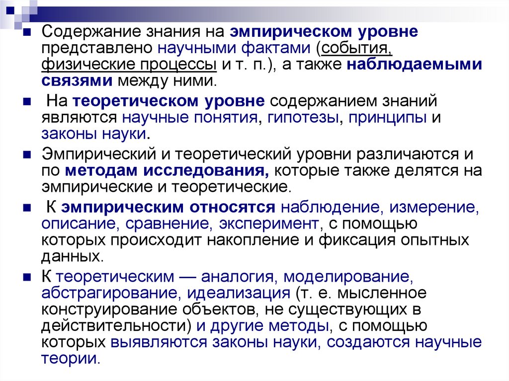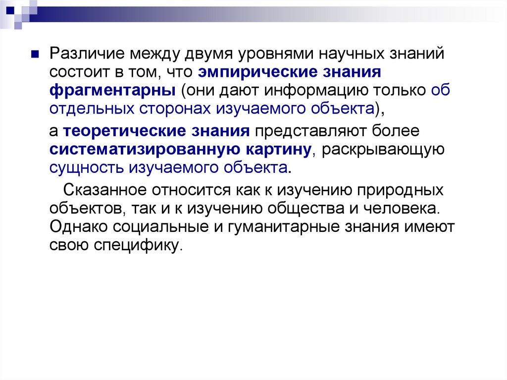 Различие между двумя уровнями научных знанийсостоит в том, что эмпирические знания