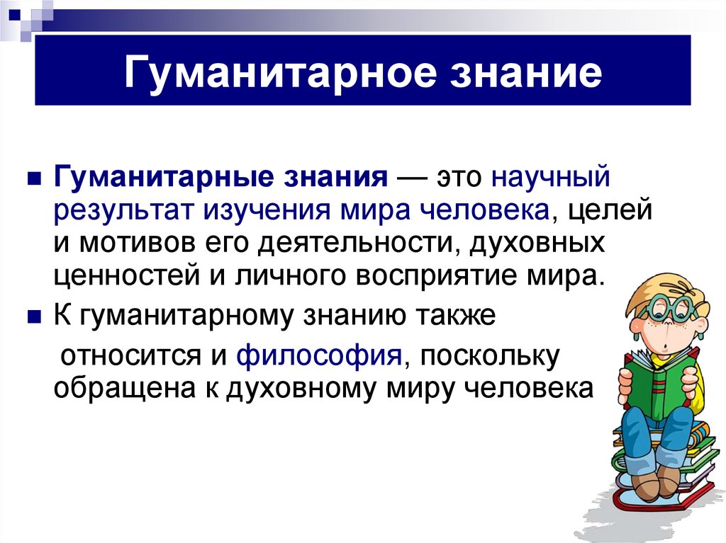 Гуманитарные знания — это научныйрезультат изучения мира человека, целей