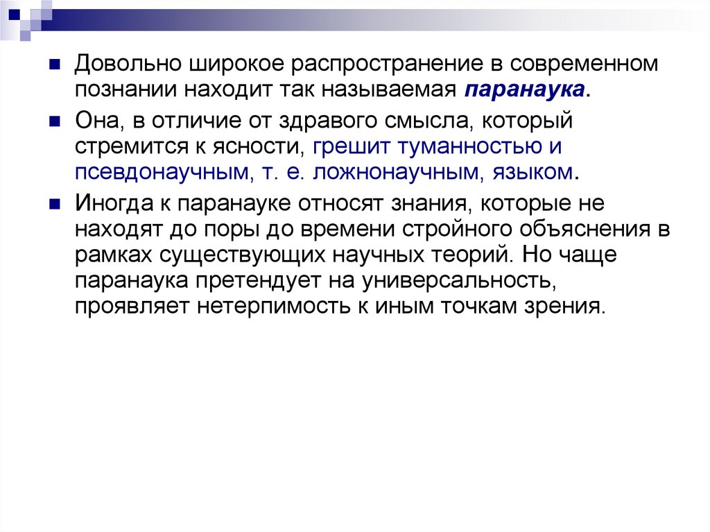 Довольно широкое распространение в современномпознании находит так называемая паранаука.
