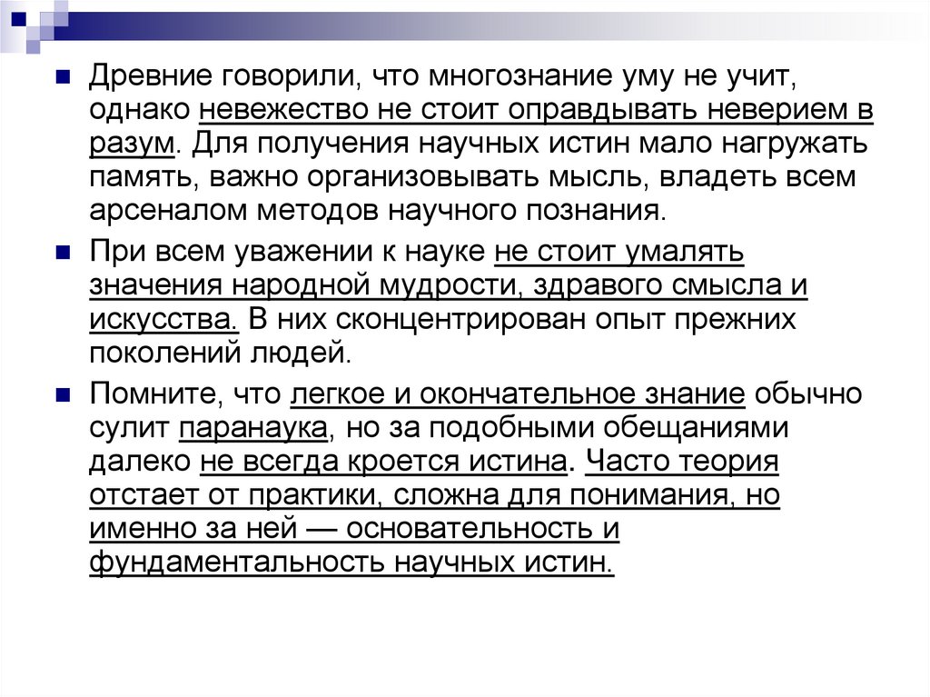 Древние говорили, что многознание уму не учит,однако невежество не стоит оправдывать неверием в
