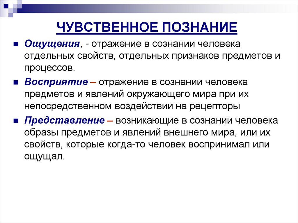 ОСНОВНЫЕ ФОРМЫ ПОЗНАНИЯЧУВСТВЕННОЕ