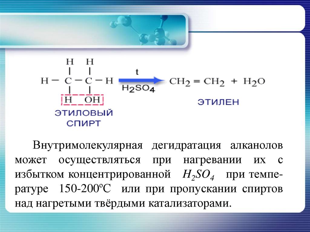 Внутримолекулярная дегидратация алканоловможет осуществляться при нагревании их с